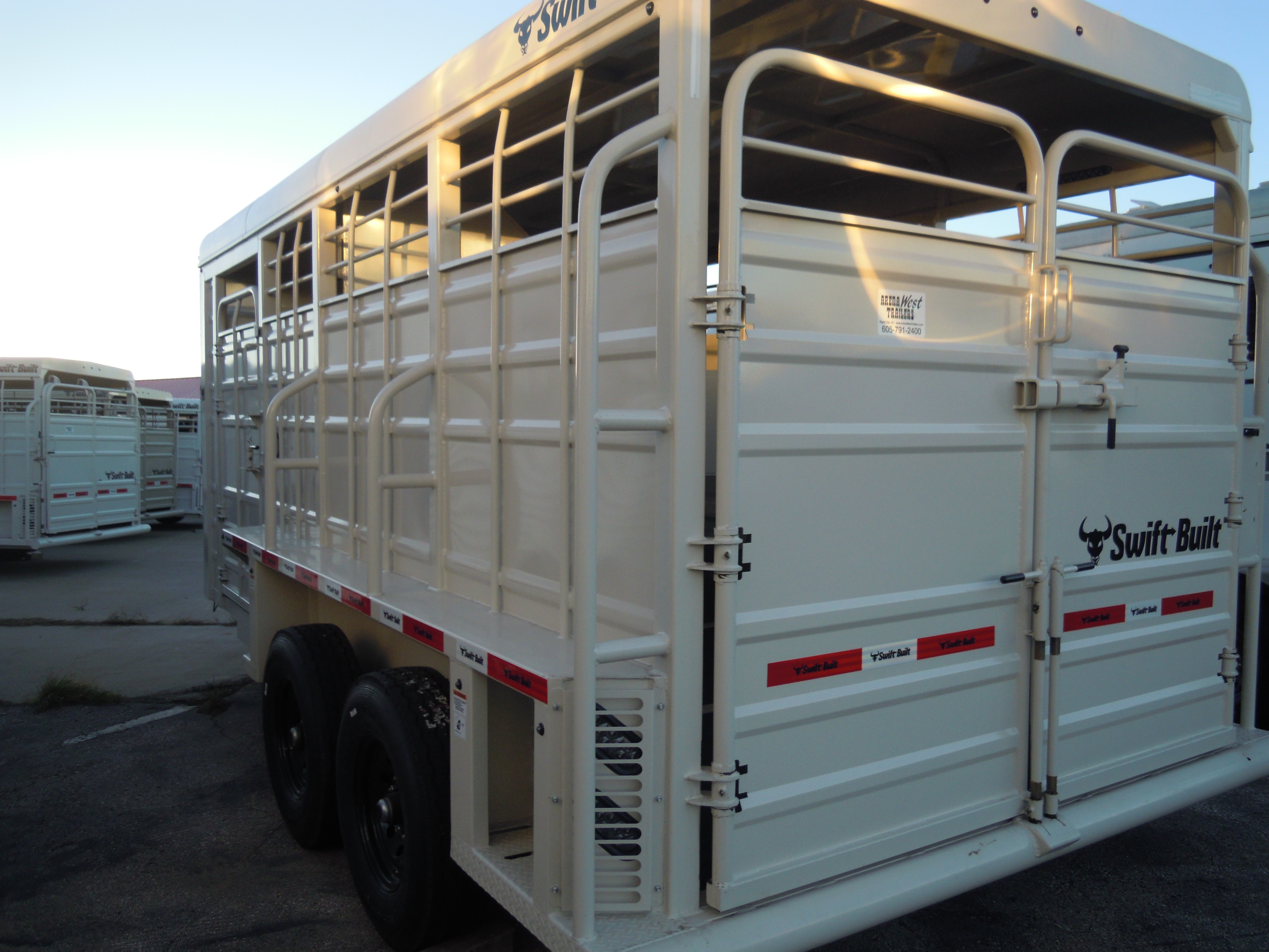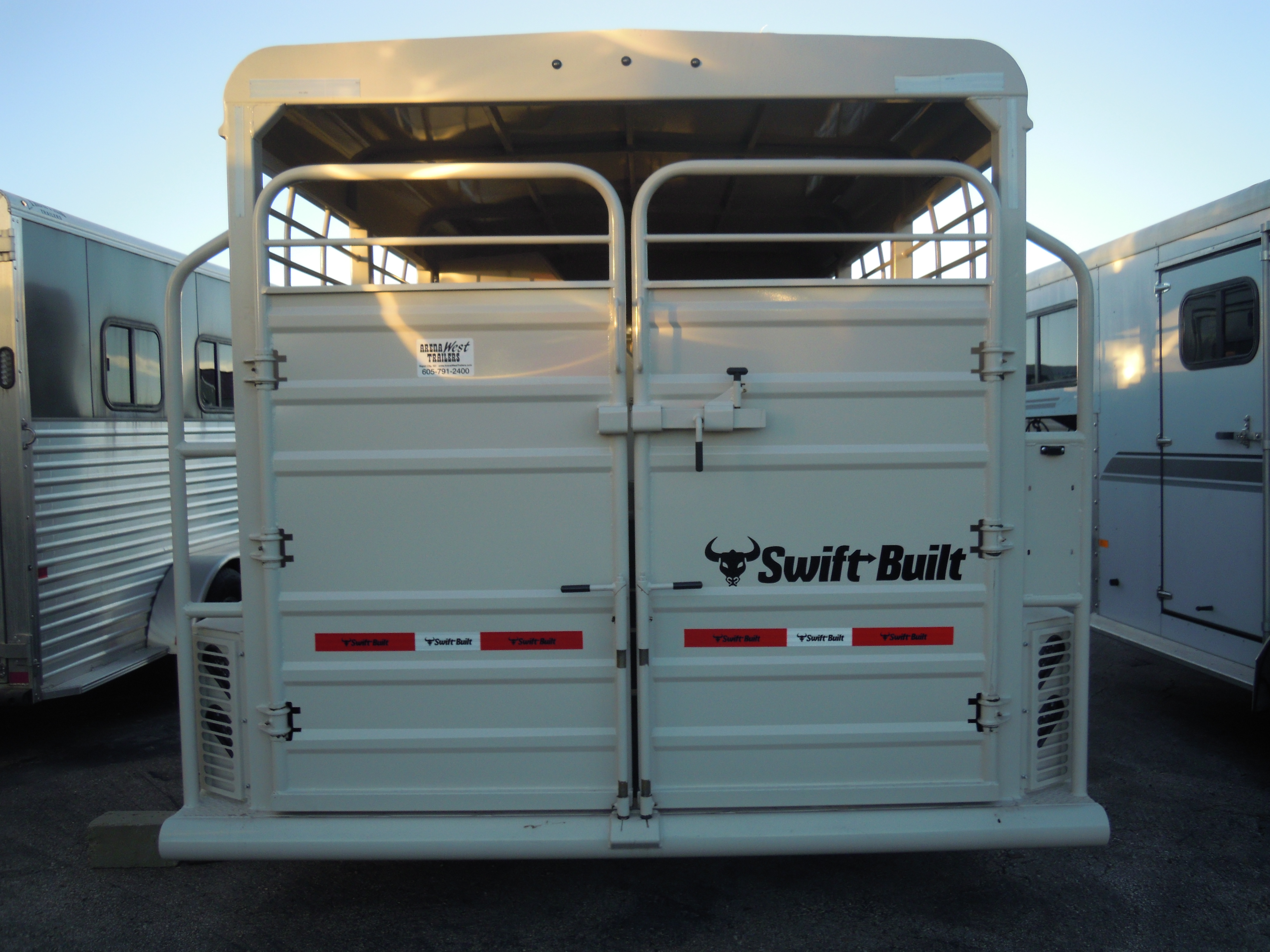 2026 SWIFT BUILT 7X18X7 2 HORSE SLANT BUMPER PULL WITH TACK ROOM. HANDY BUMPER PULL THAT CAN HAUL SMALL ANIIMALS, COW OR HORSES. ONE CENTER DIVIDER AND REAR GATES ARE BUTTERFLY DOORS. LIFETIME WARRANTY RUBBER PLANK FLOORS.