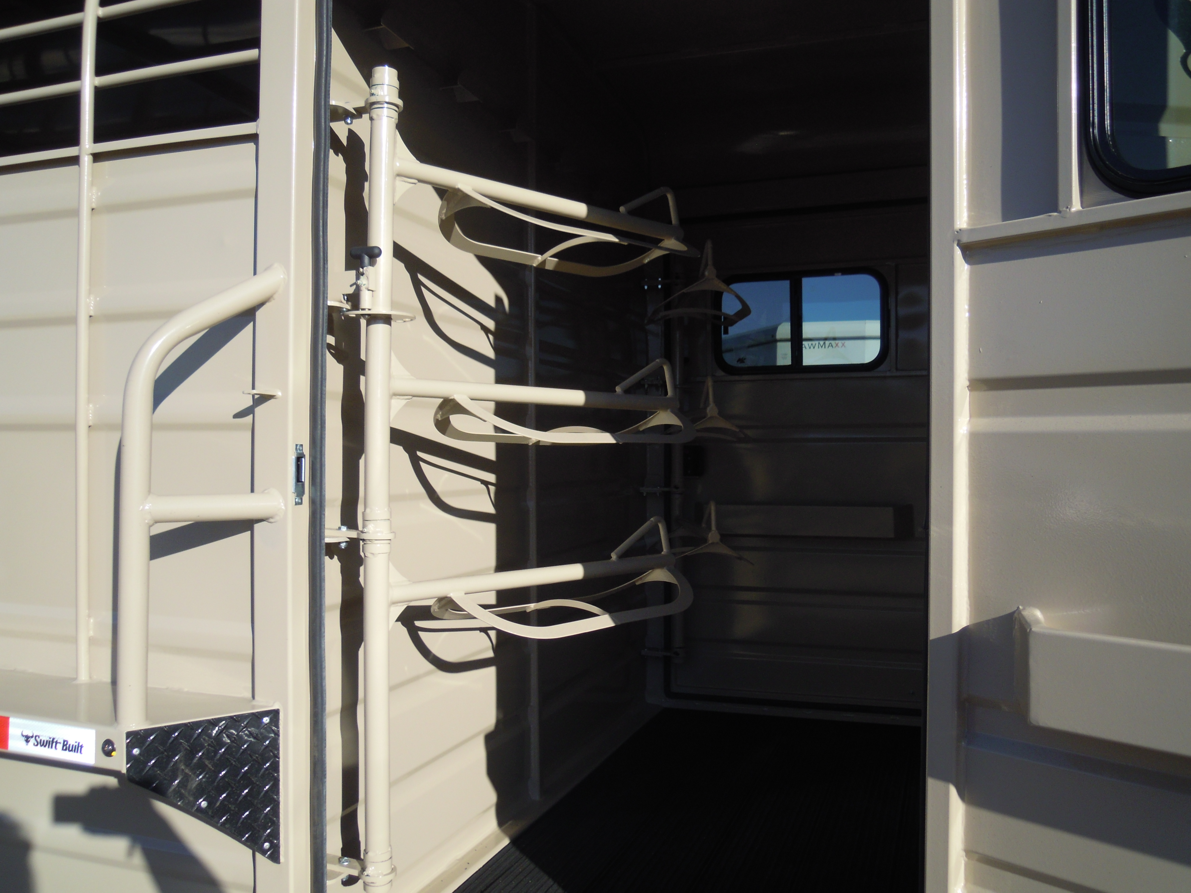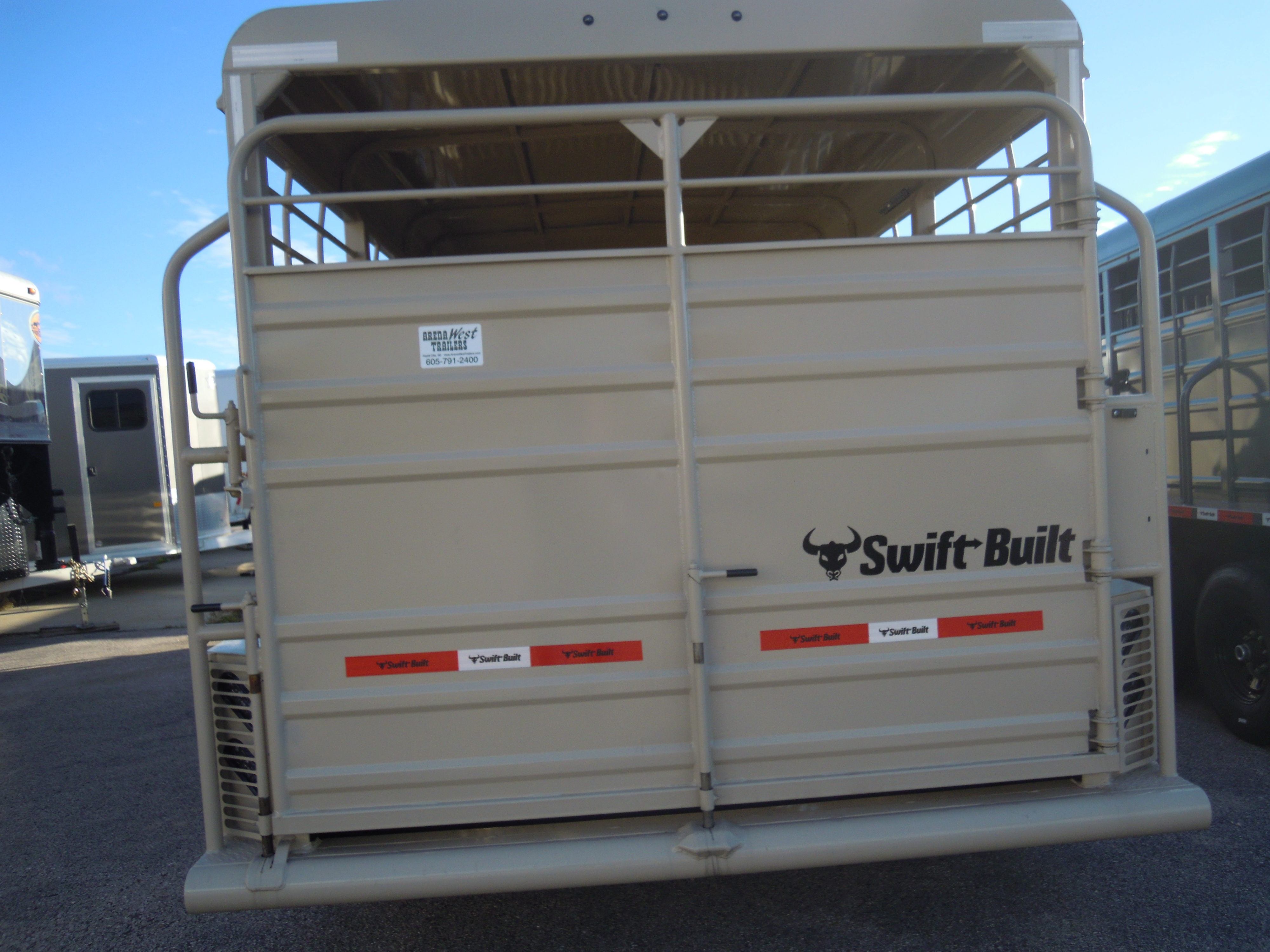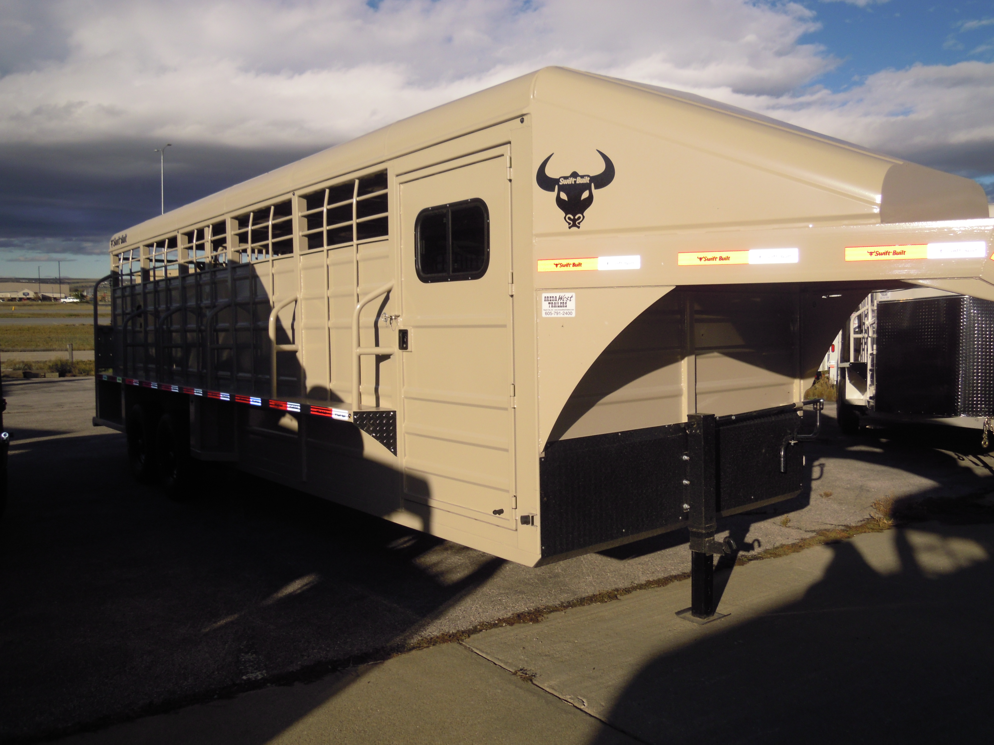 2026 SWIFT BUILT 7X24X7 STOCK COMBO GN. 4' TACK ROOM WITH DOORS ON EACH SIDE OF TRAILER, 6 SADDLE RACKS WITH BOTH BEING SWING OUTS, 4 BLANKET RACKS. COMPARTMENTS 10-10. CUT GATE, REAR SINGLE GATE FULL SWING. 7K AXLES AND 14 PLY TIRES. LIFE TIME WARRANTY ON RUBBER PLANK FLOORS.