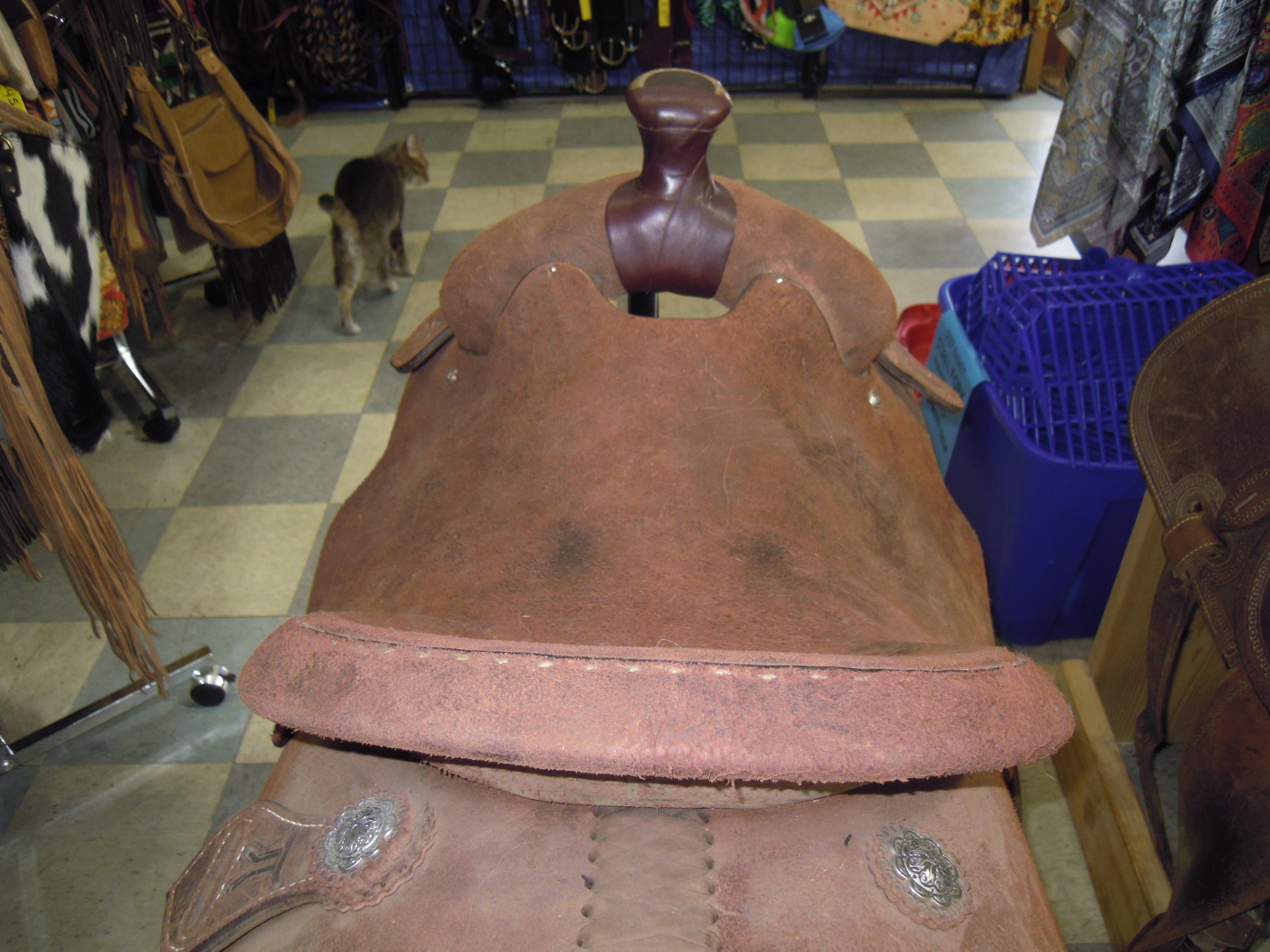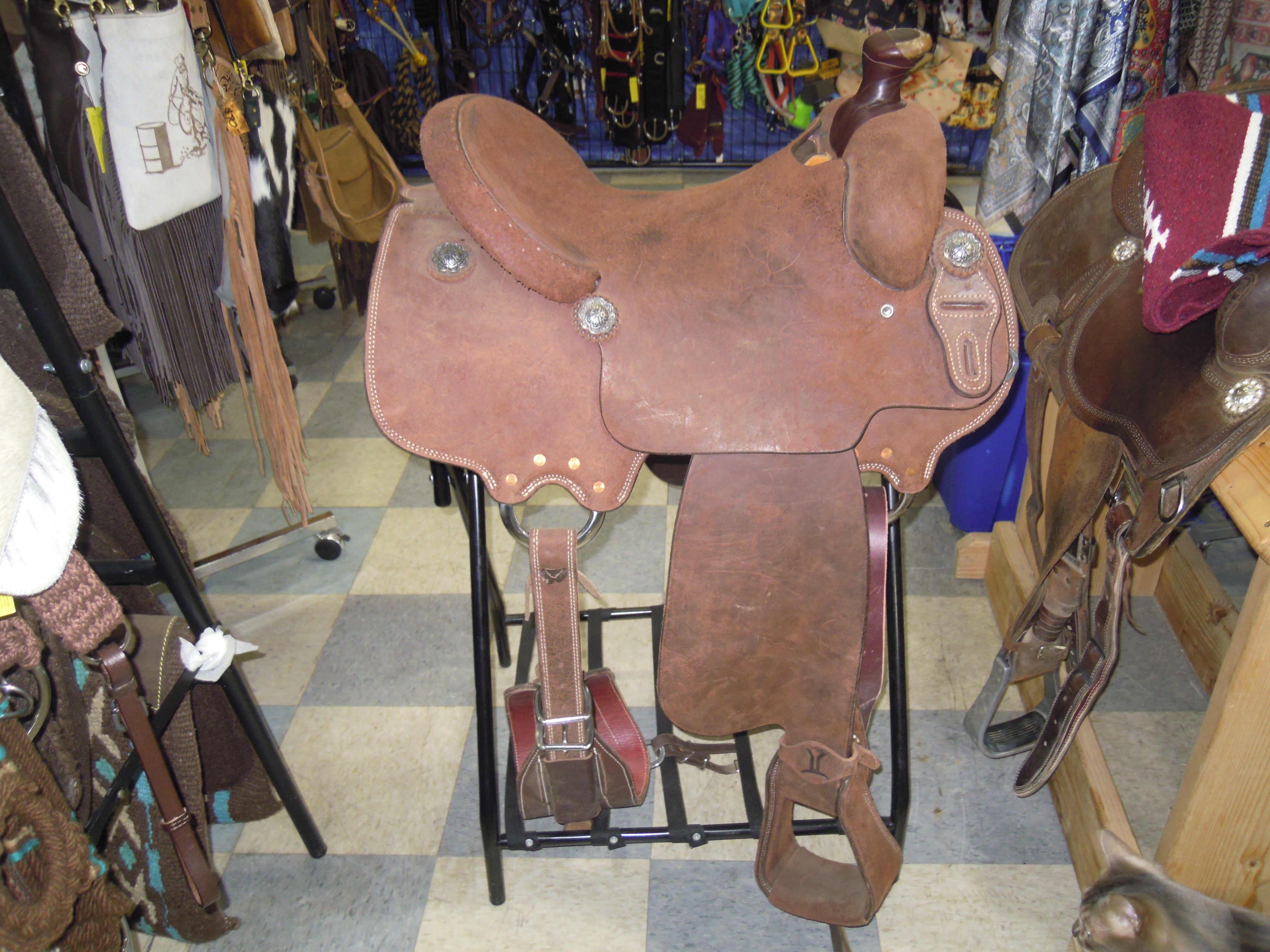 NEW CUSTOM ELITE ROPER - 15", ALL ROUGH OUT, REAL WOOL UNDERSIDE, WIDE REAR CINCH, HEAVY DUTY STIRRUPS. CONSIGNMENT