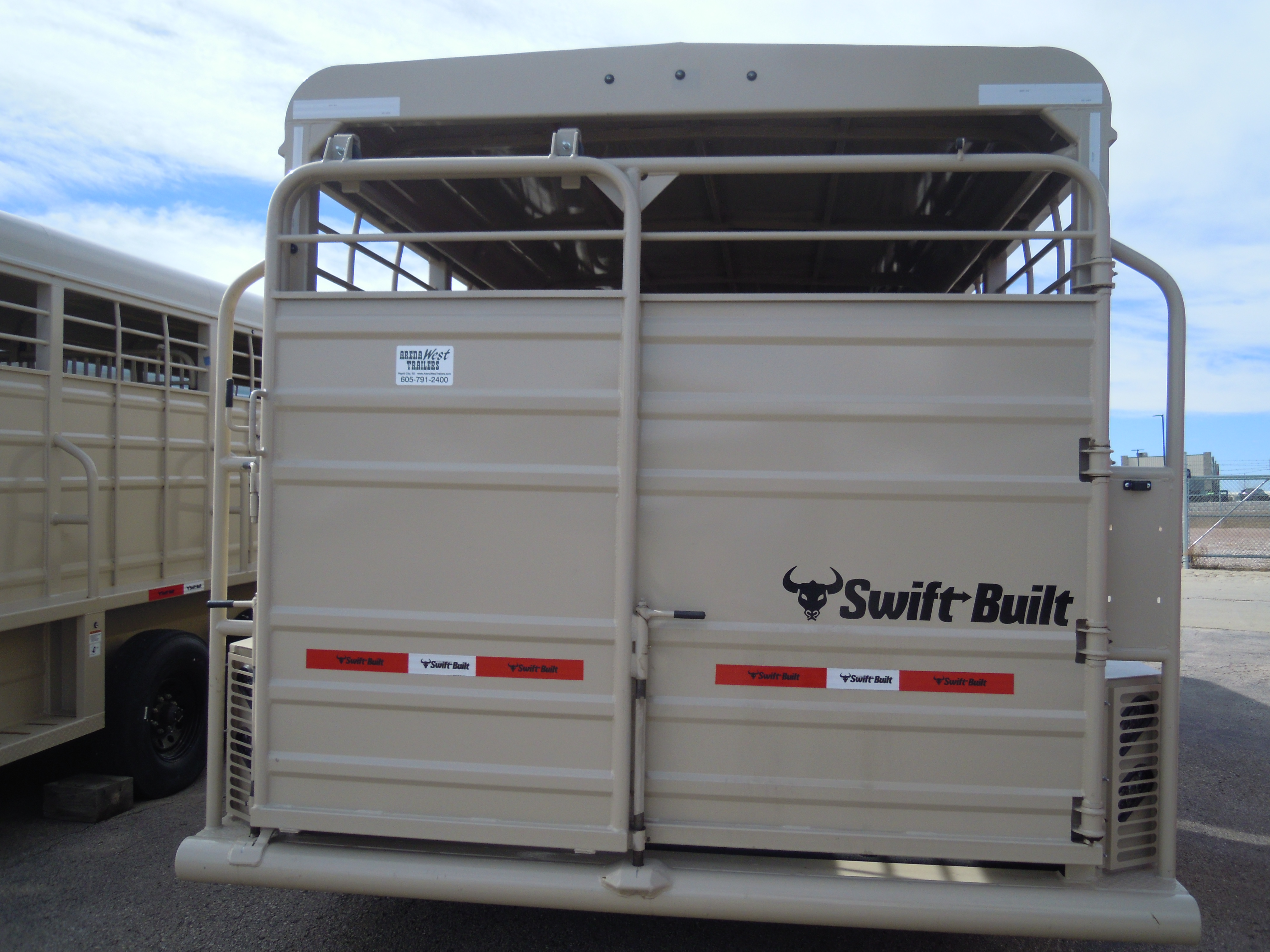 CUSTOM ORDERED SWIFT 7X22 STOCK COMBO.  2' TACK WITH 2 SINGLE DOORS, 4 REMOVABLE SADDLE RACKS, 4' ESCAPE DOOR, SLIDING GATE WITH INNER SORT GATE, FULL SWING WITH HALF SLIDE AND LIFE TIME WARRANTY RUBBER PLANK FLOORS WITH LAST 4' LUGS FOR UNSLIP LOAD/UNLOAD.