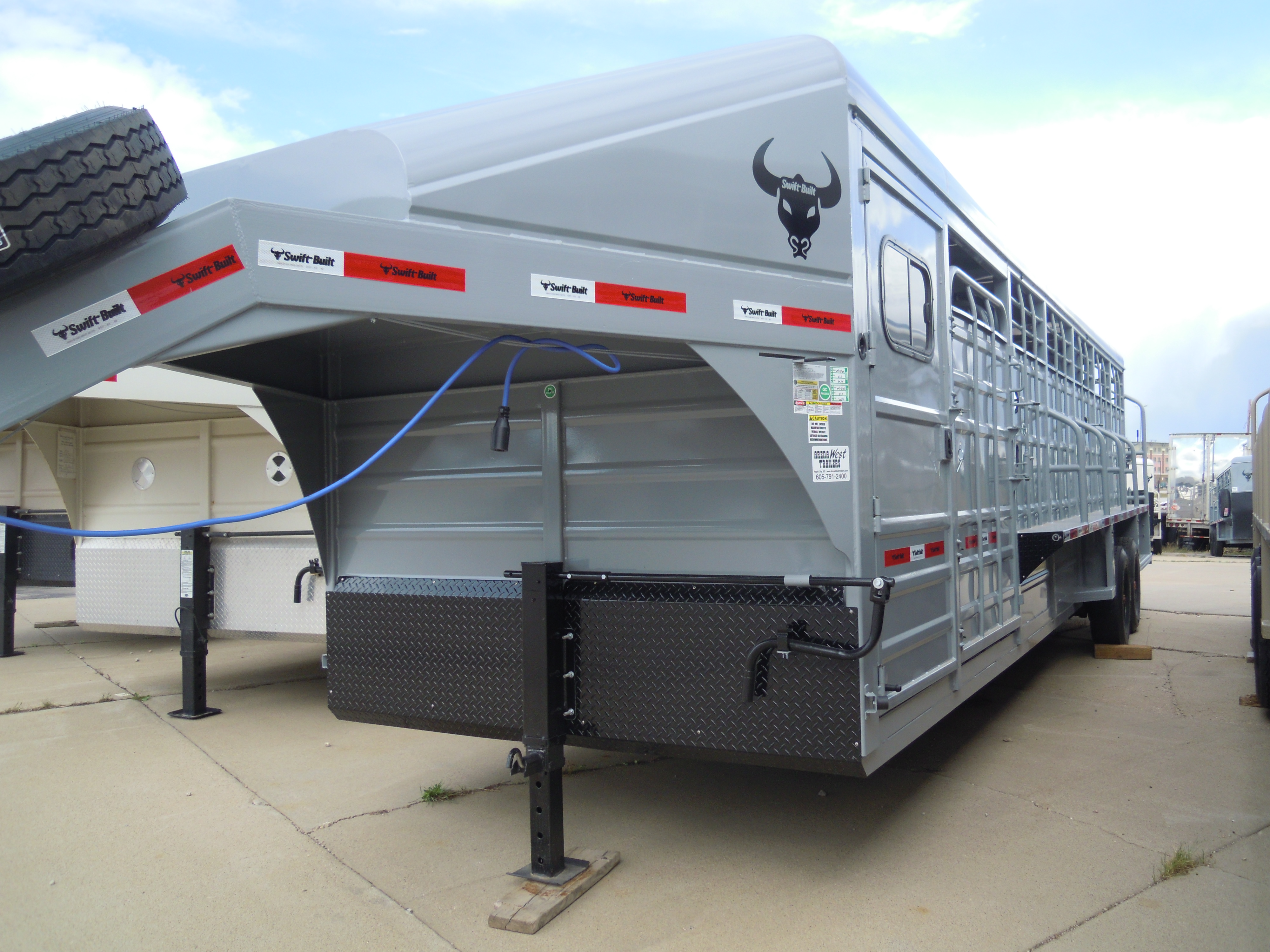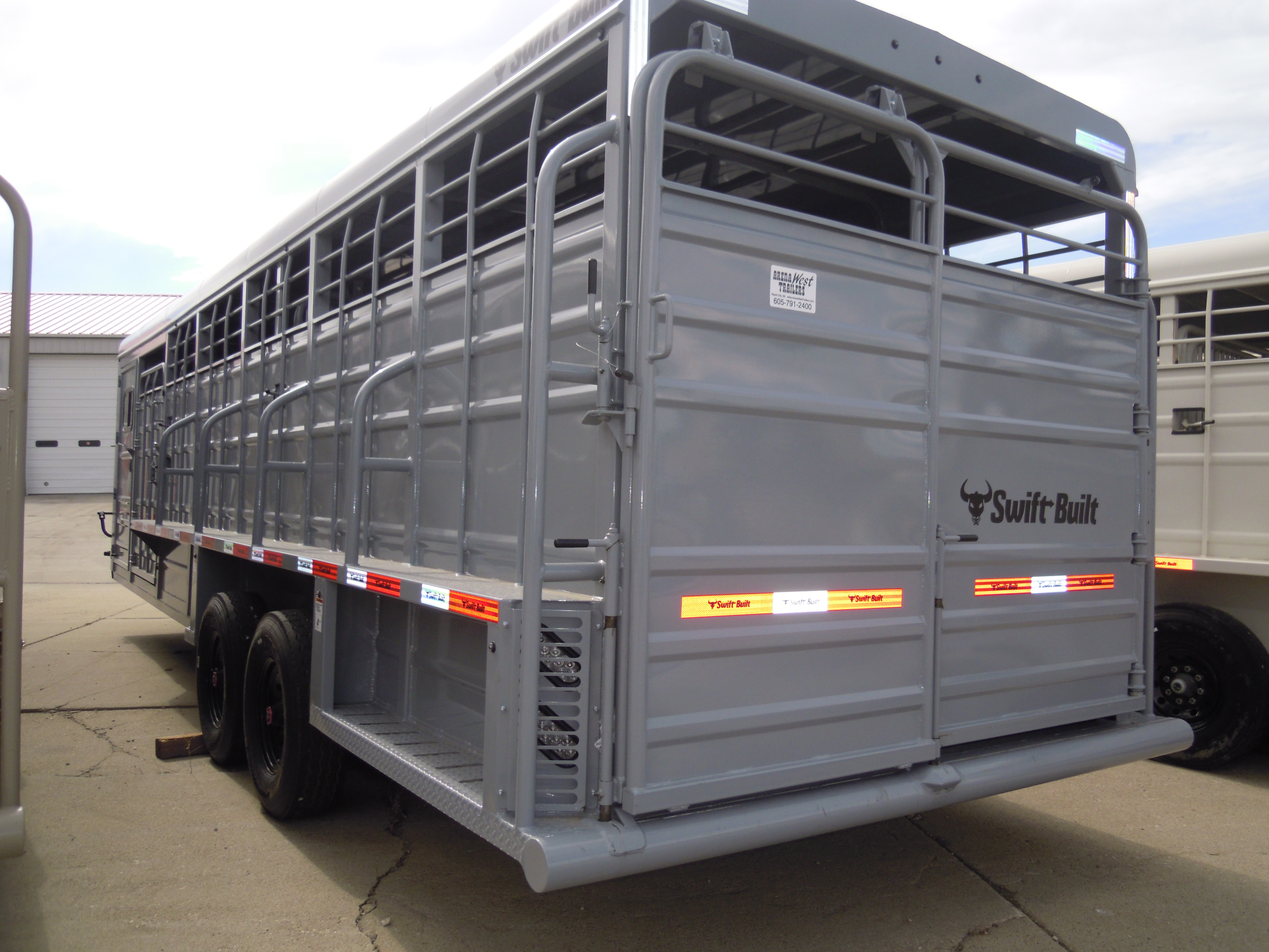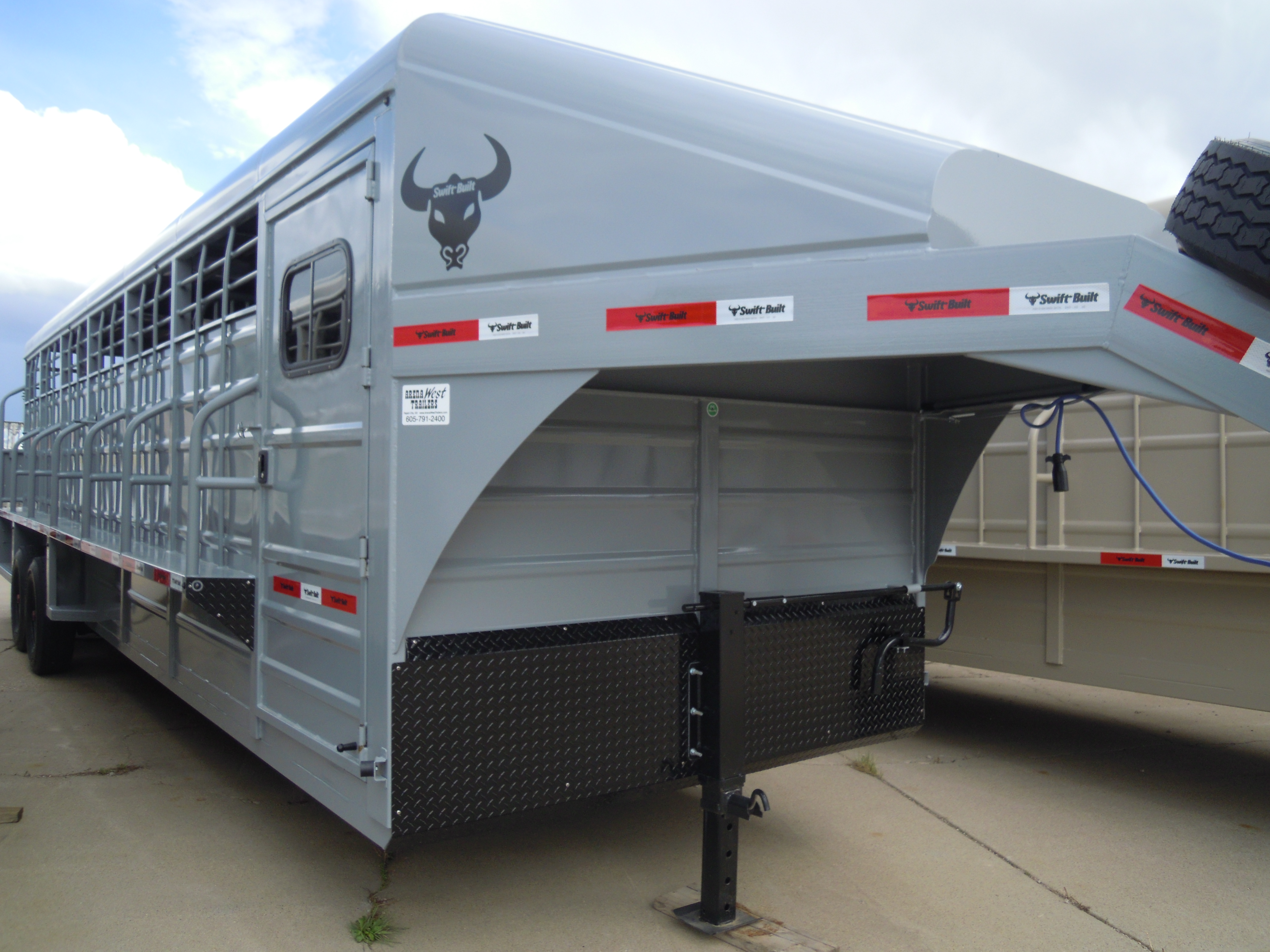 CUSSTOM ORDERED 2026 SWIFT 7X28 STOCK COMBO. 4' STCK WITH DOOR ON EACH SIDE, SWING OUT SADDLE RACK EACH SIDE WITH 3 SADDLE HOLDERS ON EACH SIDE. BRIDLE HOLDERS, BLANKET RACKS AND BRUSH BUCKETS. TWO GATES WITH HALF SLIDES AND REAR IS FULL SWING WITH HALF SLIDE. 4' WIDE ESCAPE DOOR, TWO 8K AXLES, 14 PLY TIRES INCLUDING SPARE. LIFE TIME WARRANTY ON RUBBER PLANK FLOORS.