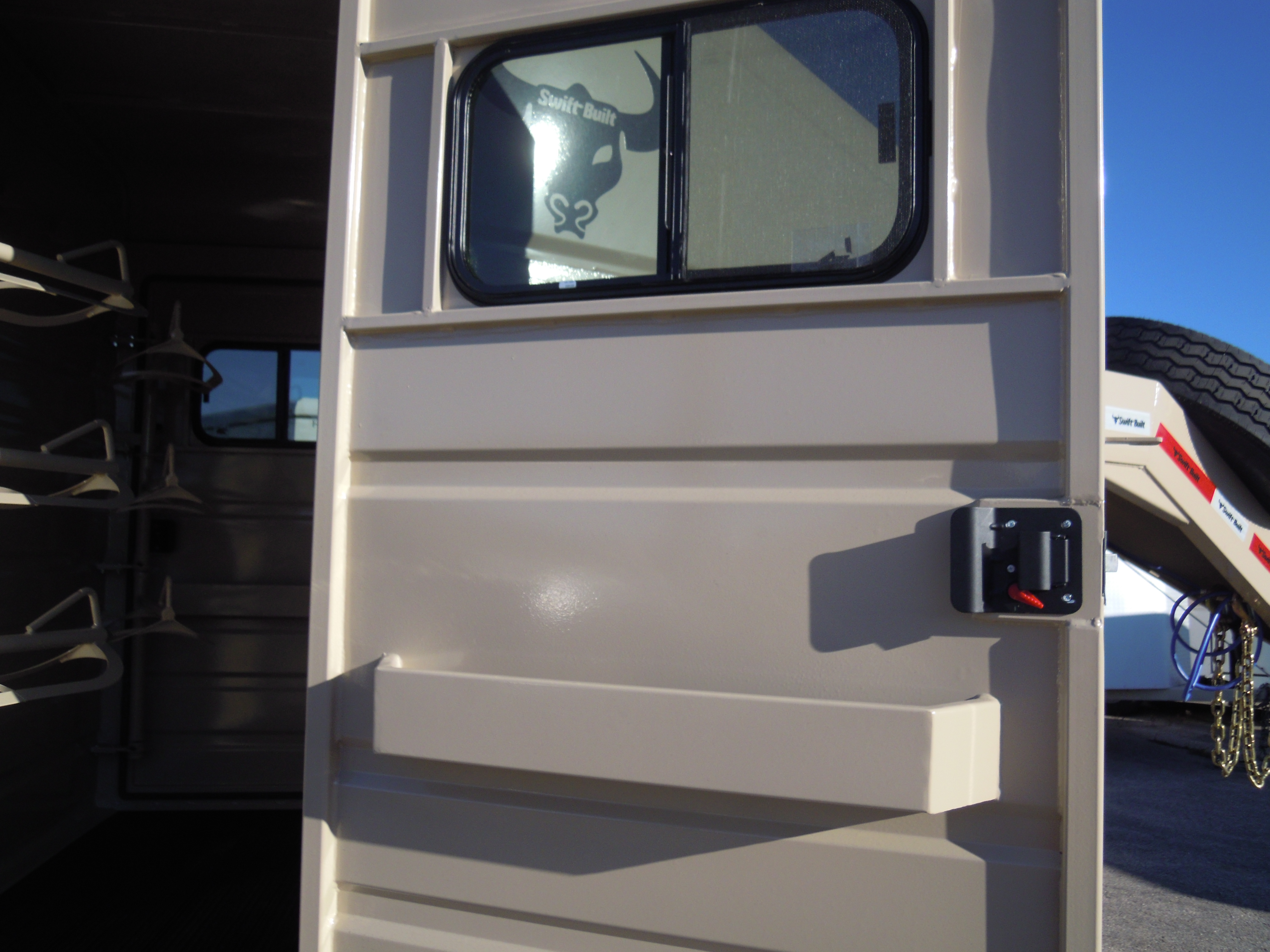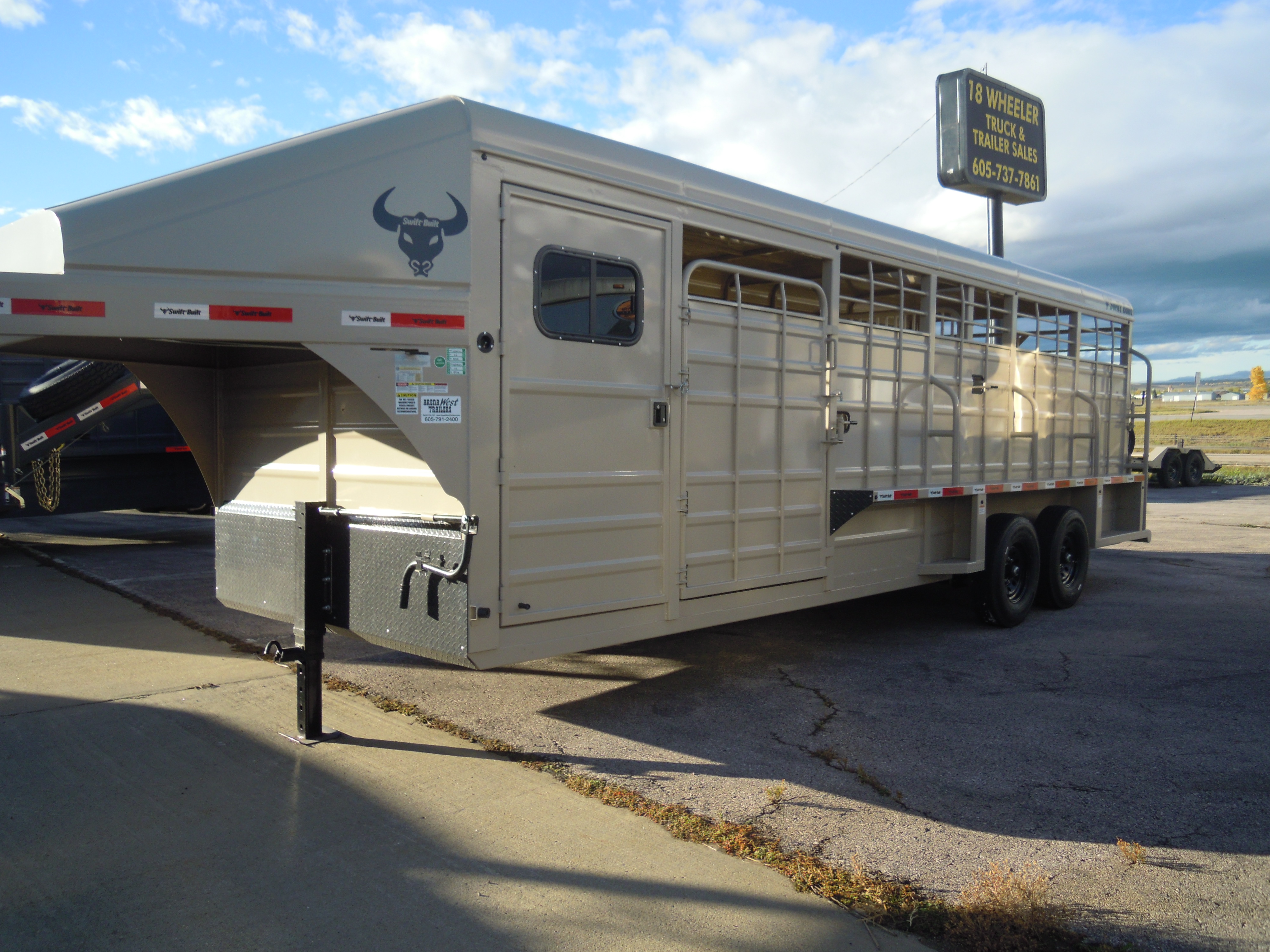 2026 SWIFT BUILT 7X24X7 STOCK COMBO GN. 4' TACK ROOM WITH DOORS ON EACH SIDE OF TRAILER, 6 SADDLE RACKS WITH BOTH BEING SWING OUTS, 4 BLANKET RACKS. COMPARTMENTS 10-10. CUT GATE, REAR SINGLE GATE FULL SWING. 7K AXLES AND 14 PLY TIRES. LIFE TIME WARRANTY ON RUBBER PLANK FLOORS.