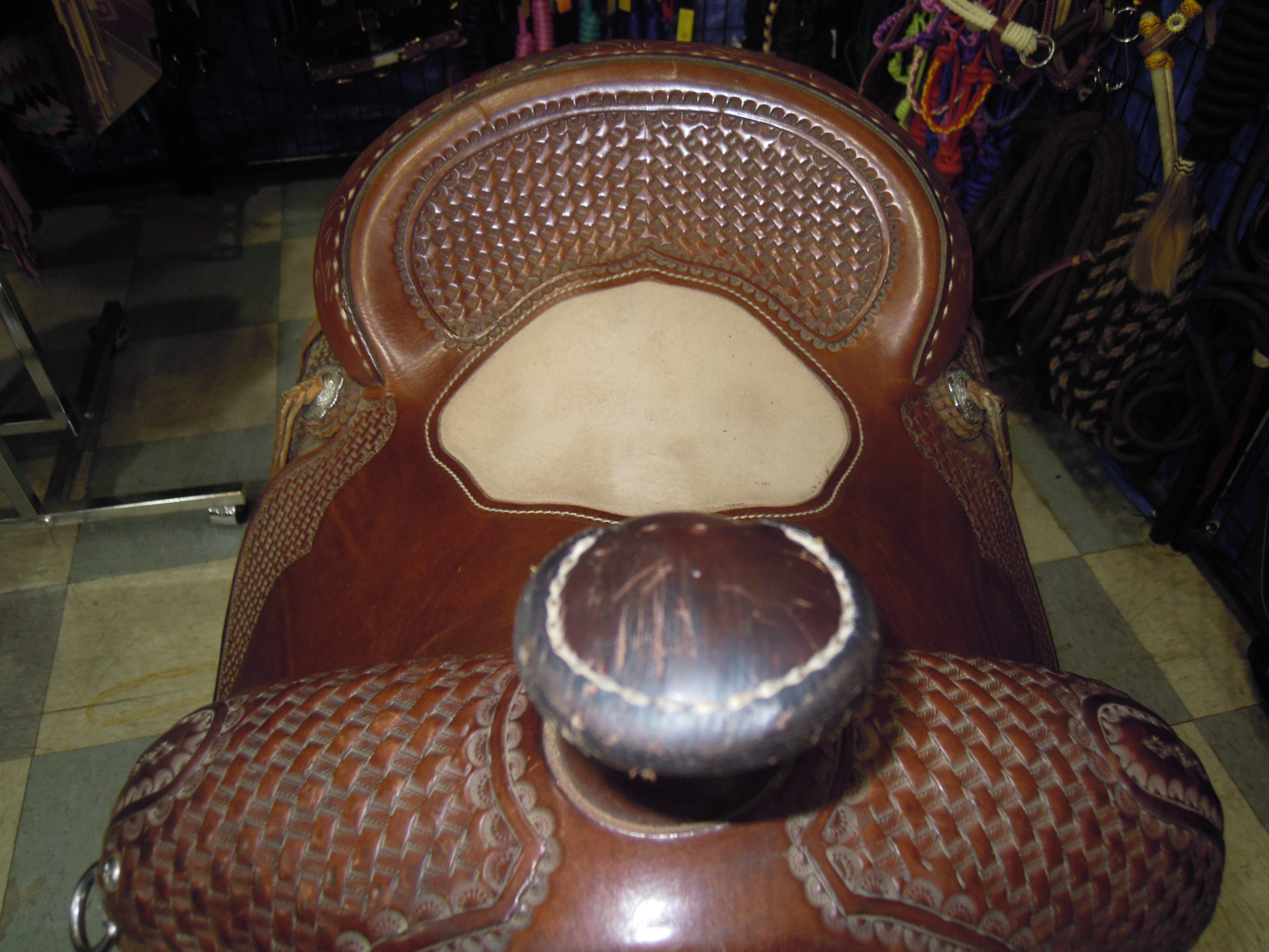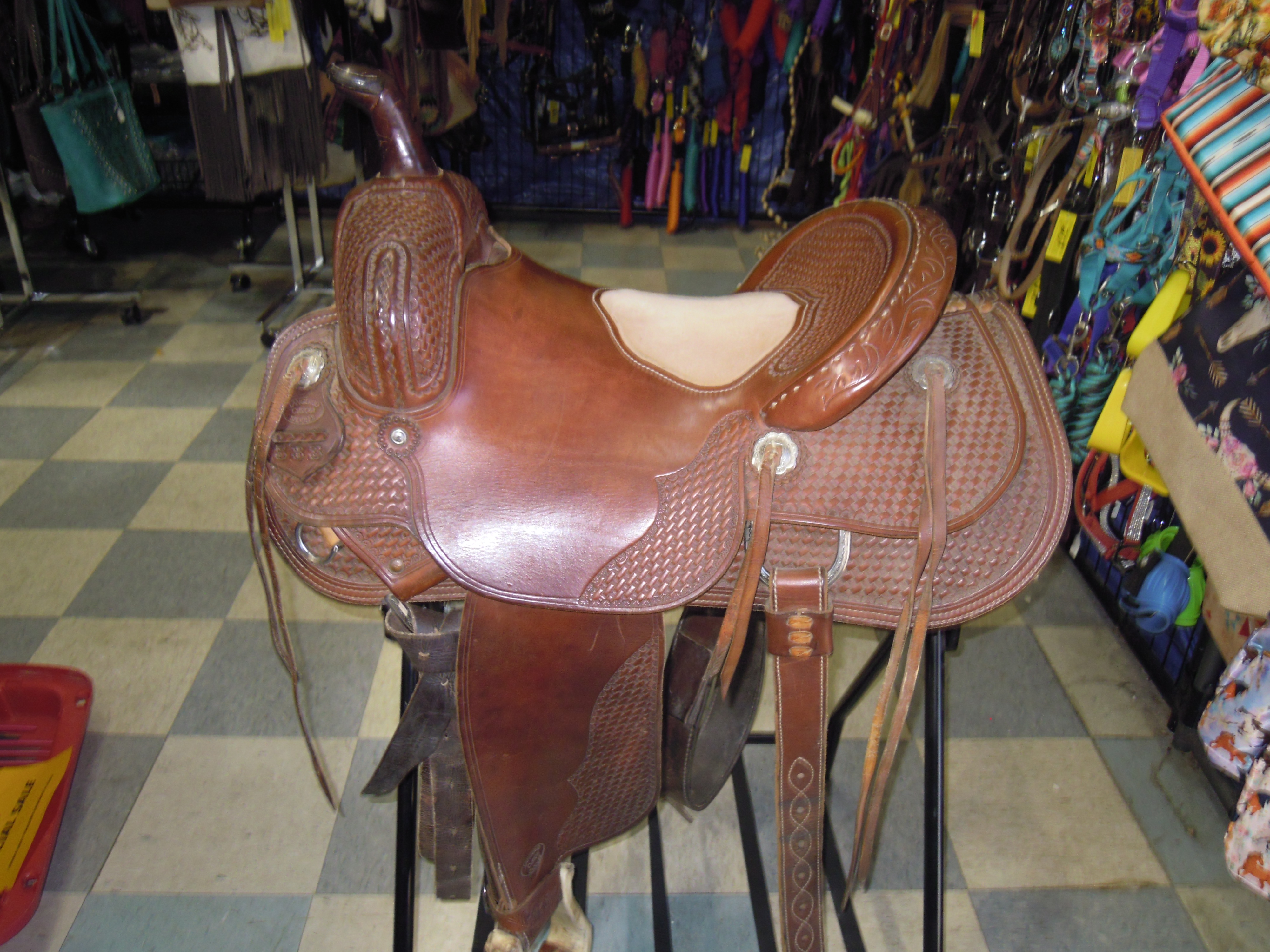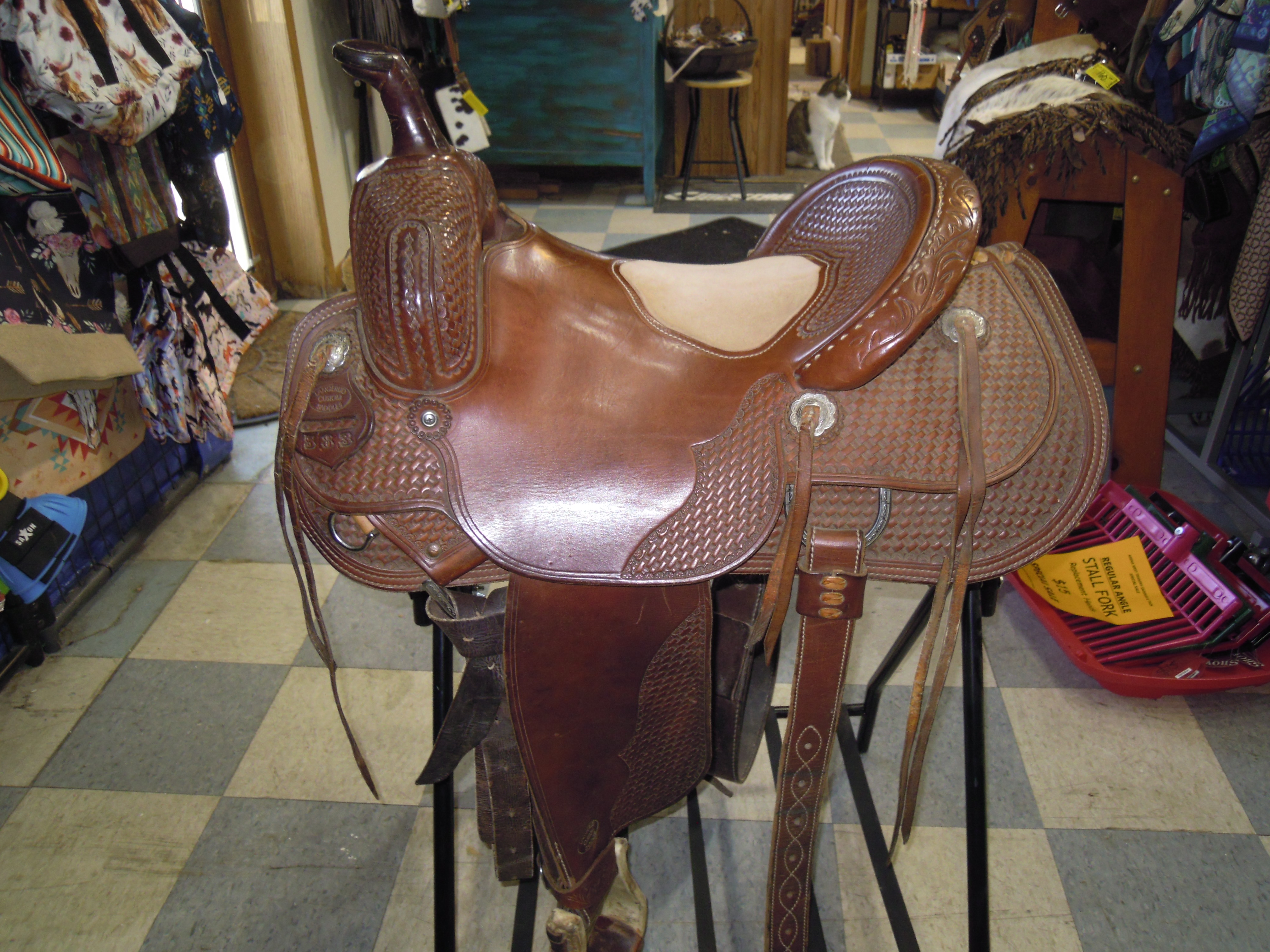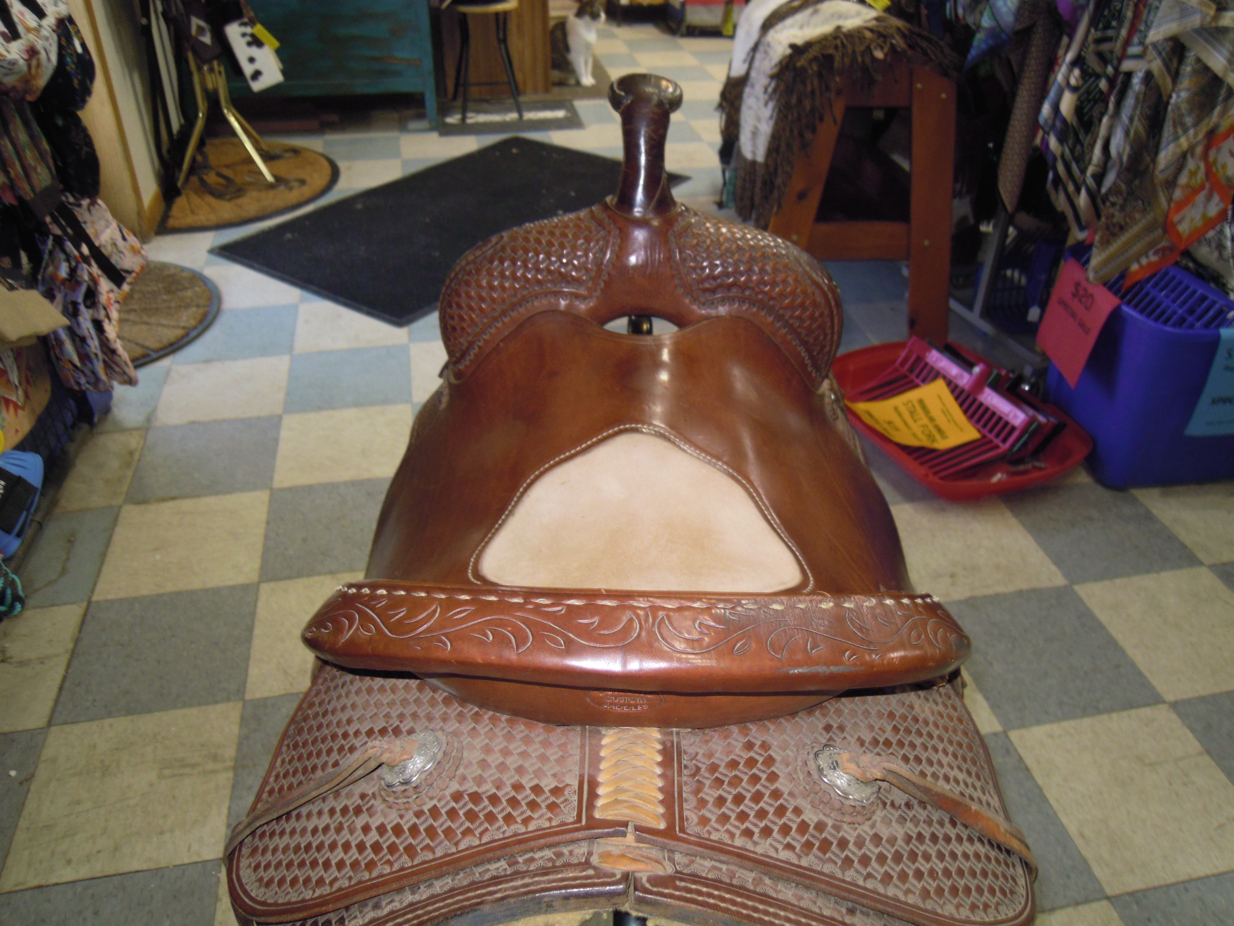 BEAUTIFUL HAND MADE SADDLE REAL WOOL UNDERSIDE, 15.5. GREAT SHAPE. CONSIGNMENT