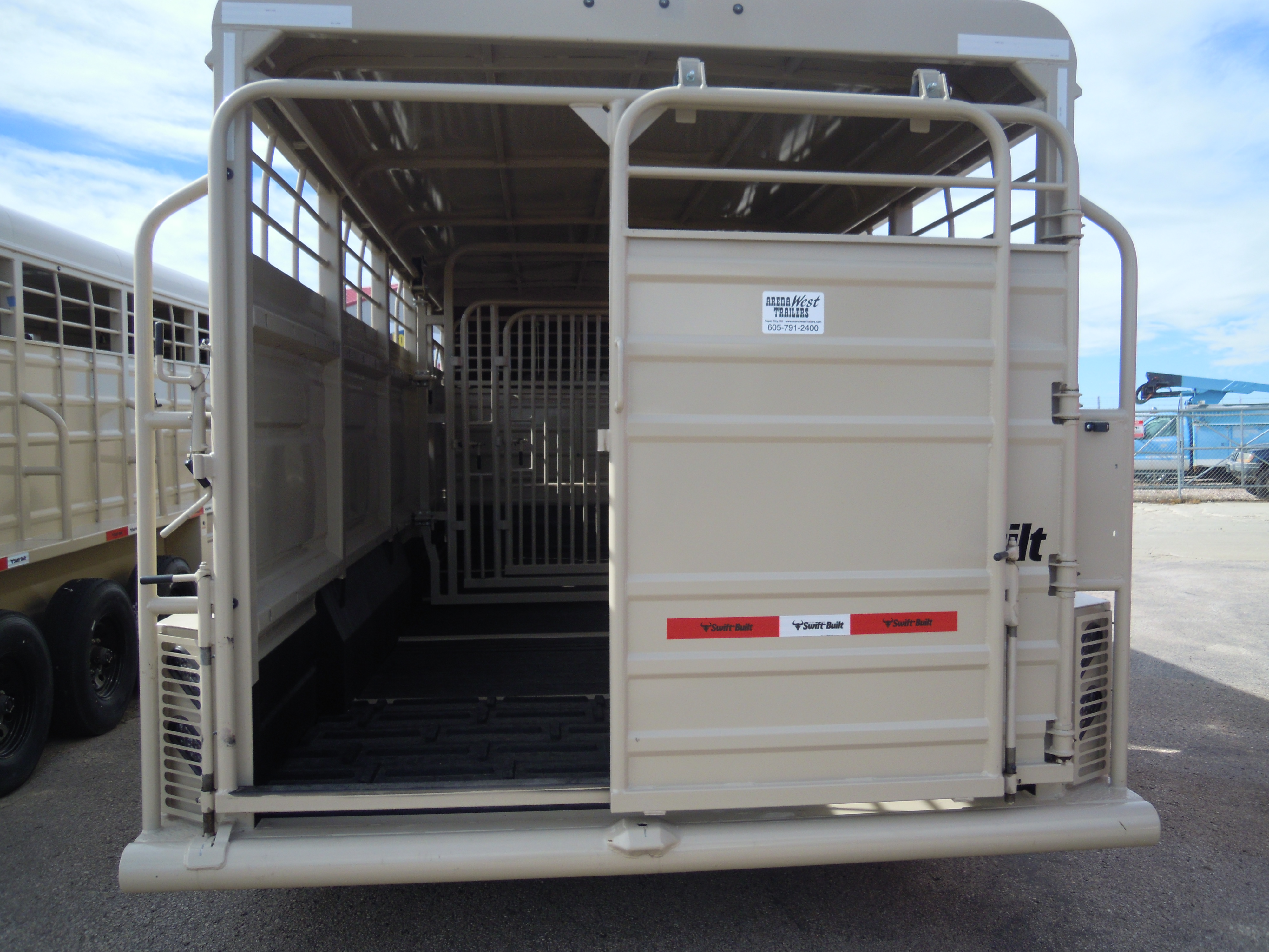CUSTOM ORDERED SWIFT 7X22 STOCK COMBO.  2' TACK WITH 2 SINGLE DOORS, 4 REMOVABLE SADDLE RACKS, 4' ESCAPE DOOR, SLIDING GATE WITH INNER SORT GATE, FULL SWING WITH HALF SLIDE AND LIFE TIME WARRANTY RUBBER PLANK FLOORS WITH LAST 4' LUGS FOR UNSLIP LOAD/UNLOAD.