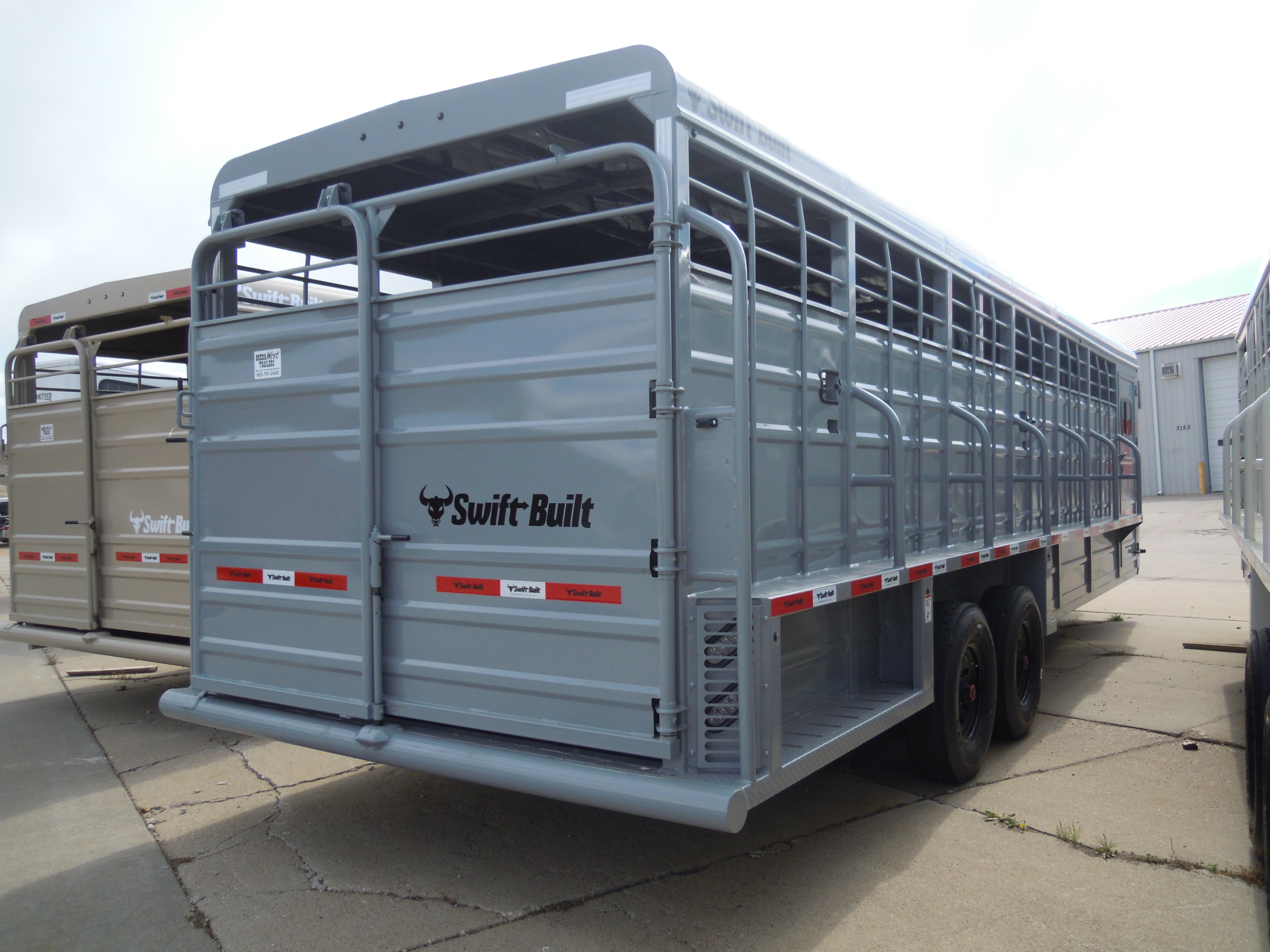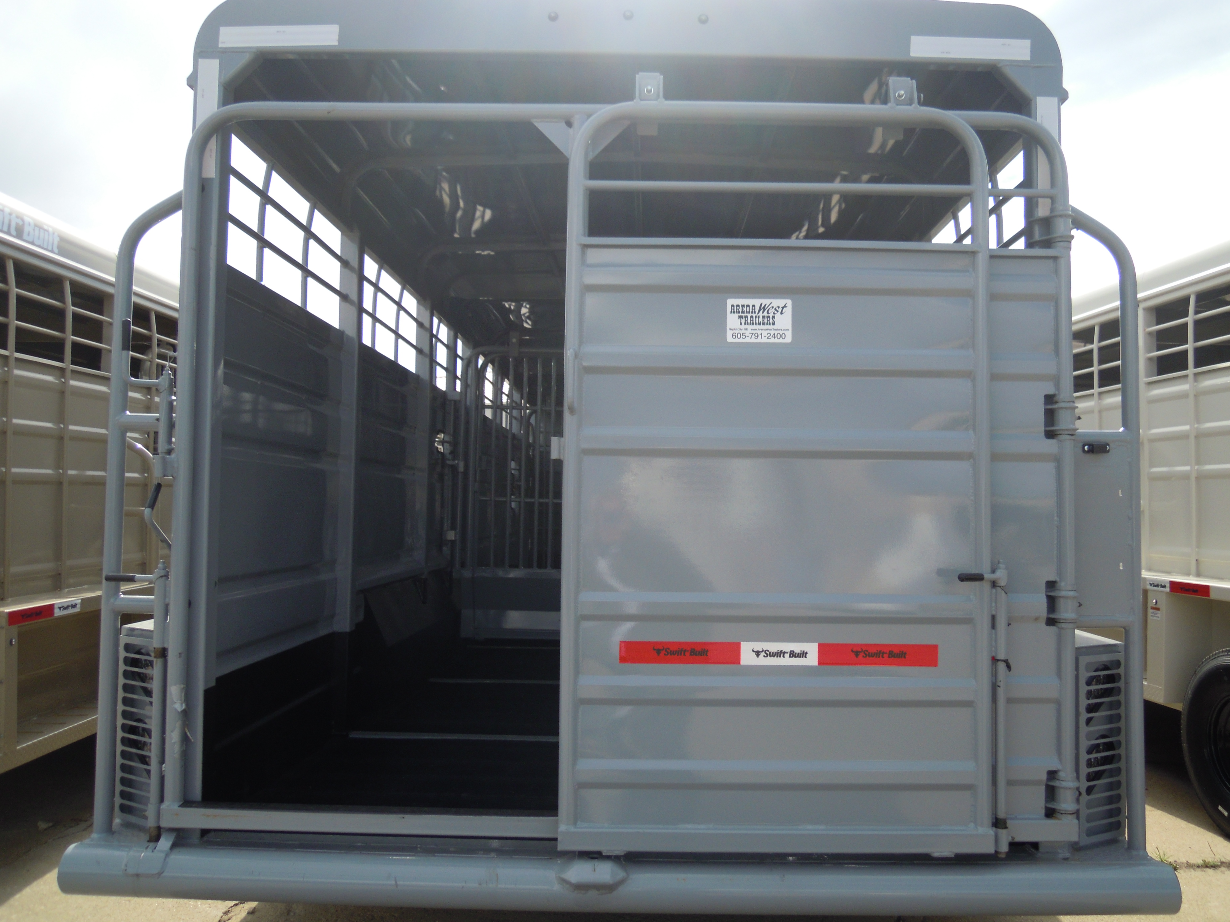 CUSSTOM ORDERED 2026 SWIFT 7X28 STOCK COMBO. 4' STCK WITH DOOR ON EACH SIDE, SWING OUT SADDLE RACK EACH SIDE WITH 3 SADDLE HOLDERS ON EACH SIDE. BRIDLE HOLDERS, BLANKET RACKS AND BRUSH BUCKETS. TWO GATES WITH HALF SLIDES AND REAR IS FULL SWING WITH HALF SLIDE. 4' WIDE ESCAPE DOOR, TWO 8K AXLES, 14 PLY TIRES INCLUDING SPARE. LIFE TIME WARRANTY ON RUBBER PLANK FLOORS.